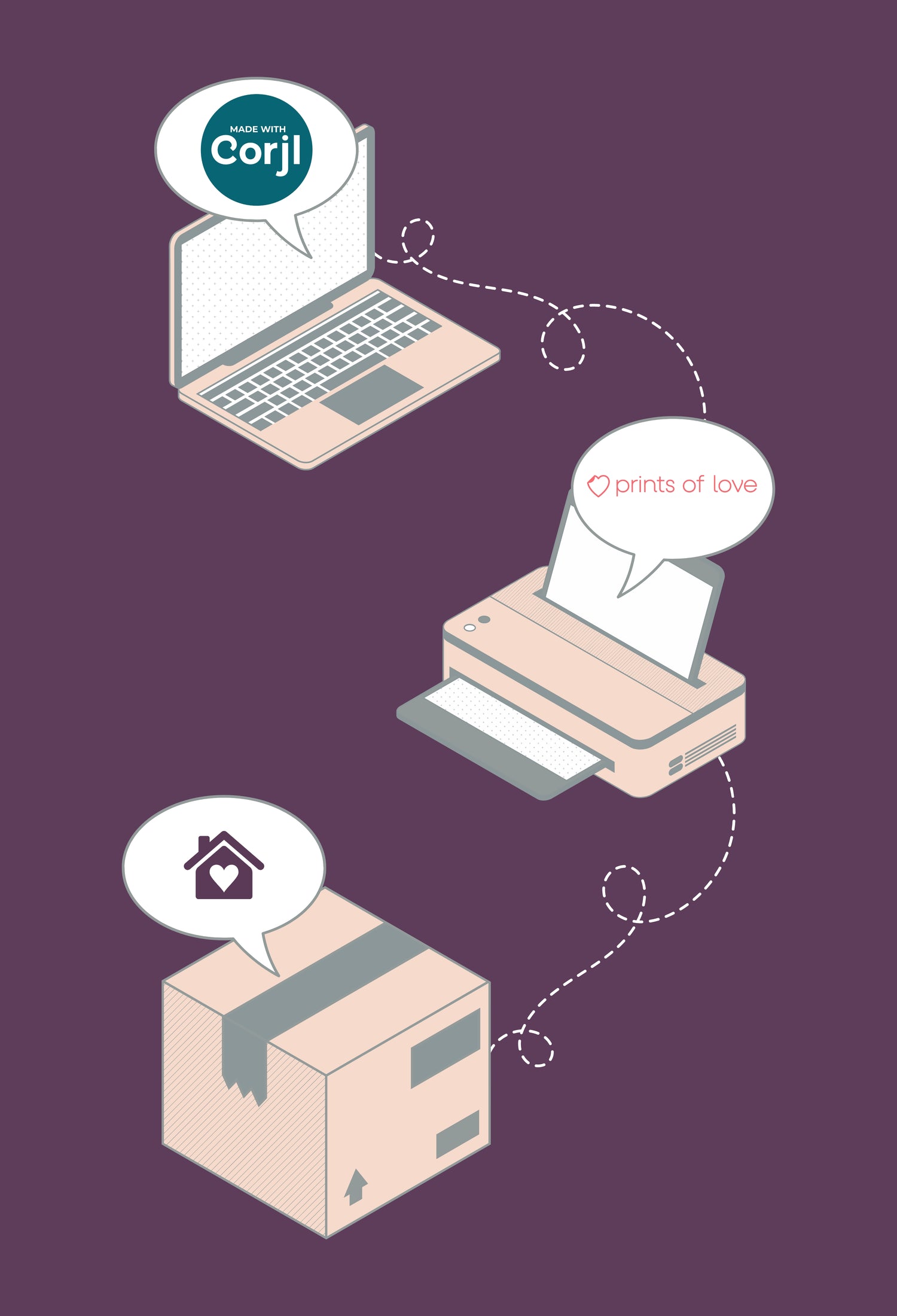 After customizing your product with Corjl, you will have the option to directly send it to Prints of Love. Prints of Love is an online printing service that offers a wide variety of products, card formats, and paper options suitable for any kind of event. This convenient service ensures high-quality prints and a seamless experience from customization to the final printed product.