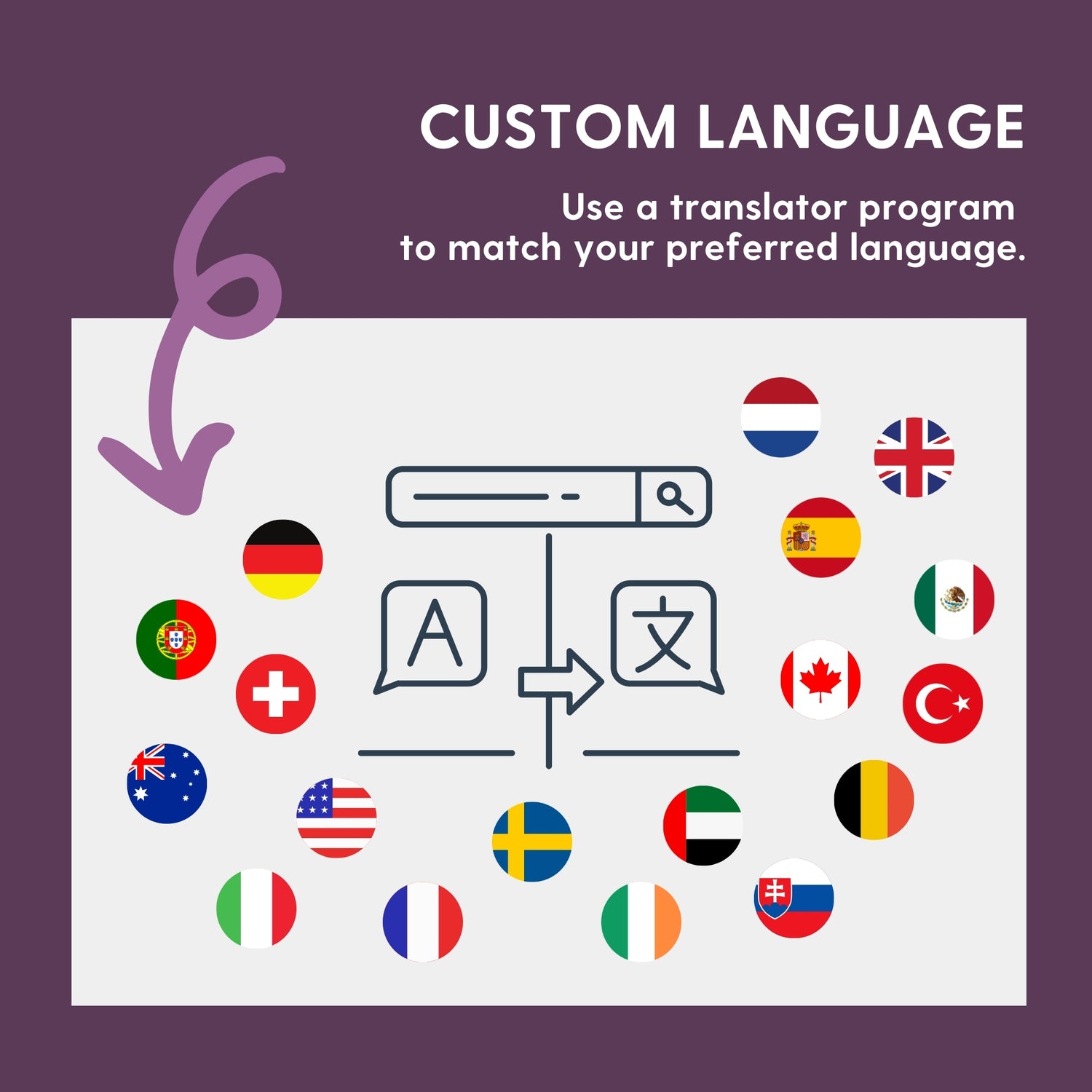 We are privileged to serve customers from around the world. While all files and instructions are in English, you can easily translate the text fields in your design using programs like Google Translate or Deepl. Need help with a translation? Feel free to reach out!